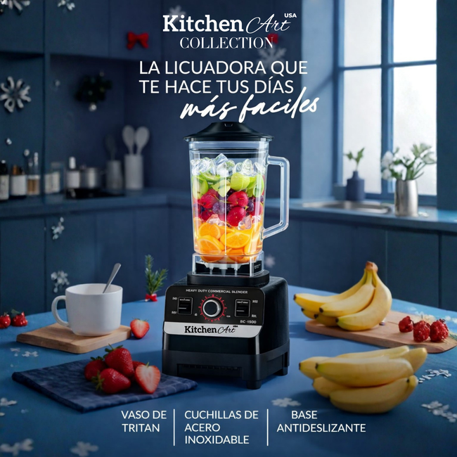 La Licuadora Kitchen Art está diseñada para quienes buscan potencia, control y versatilidad en la cocina. Con un motor de 4500W y 15 velocidades ajustables, permite licuar, triturar y mezclar todo tipo de ingredientes con resultados precisos.